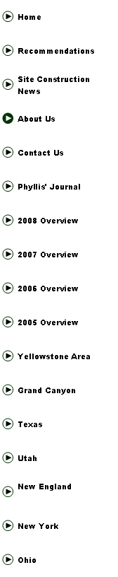 Larry and Phyllis were married in 1968 and raised and home schooled two children with Larry working as a computer expert. Larry, Phyllis, Roscoe, and Harpo now travel the USA in a 2001 Jayco Eagle Travel Trailer (26 foot with no slides) towed by a 1999 Dodge Diesel 3500 dually.  They are trying to see and experience the country. Larry and Phyllis are workampers who work as they travel. Their resume can pulled up if you know of an opportunity for them to work their way through a particular area of the country..      |