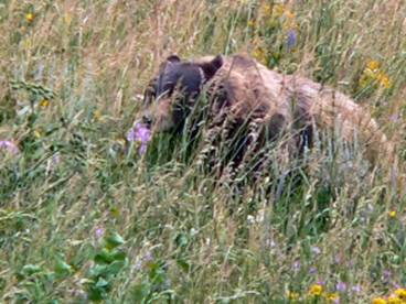 Cinnamon Bear This is not a grizzly. A Black Bear with brown fur. Enjoying wildflowers. Black Tail Plateau Road in |